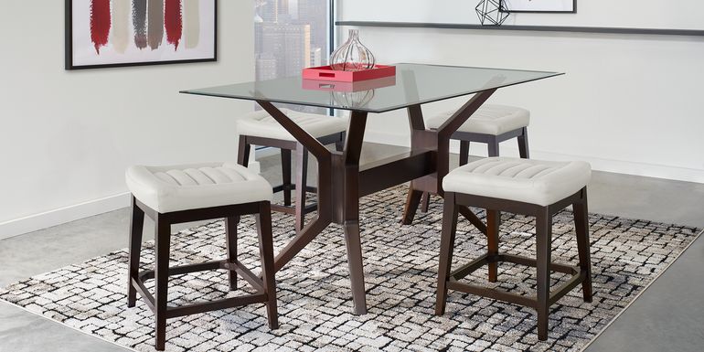 Counter height dining sets are perfect for a spacious dining room. Mango solids, upholstered seating and an acacia veneer are among the many highlights of the porter collection. Henna dining room set by samuel lawrence furniture.