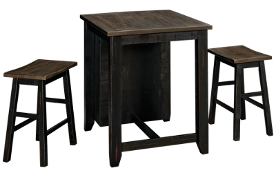 Jofran Madison County 3 Piece Counter Height Dining Set. Jofran madison table & counter stools package; 36 w x 30d x 37.5h. Solid pine compact rustic dining set with 2 saddles stools & a table with open shelving on one side.