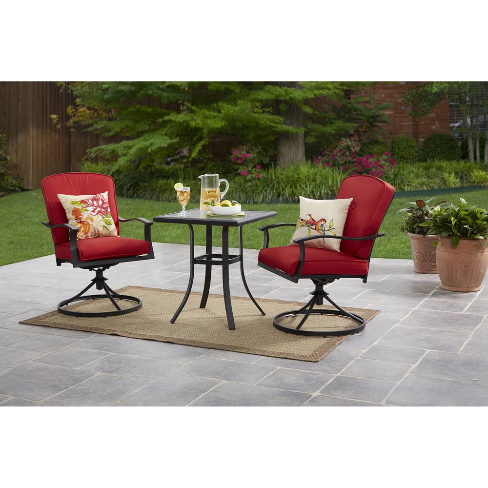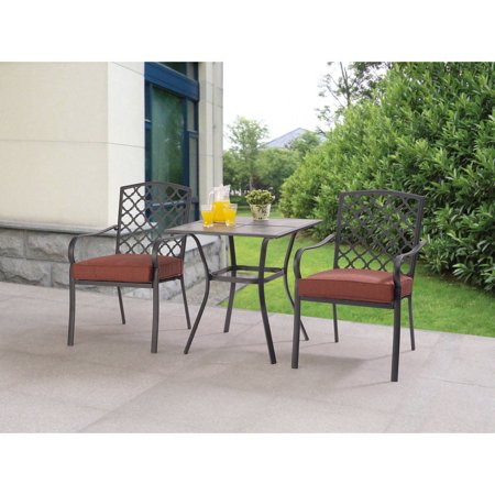 Mainstays Retro Bistro Set. Price was under $125 when article was written. 4.6 out of 5 stars, based on 182 reviews 182 ratings. To clean cushions or cover, such as fabric or sling, use a mild solution of soap and water, pad out excess moisture with a dry towel after rinsing and allow to.