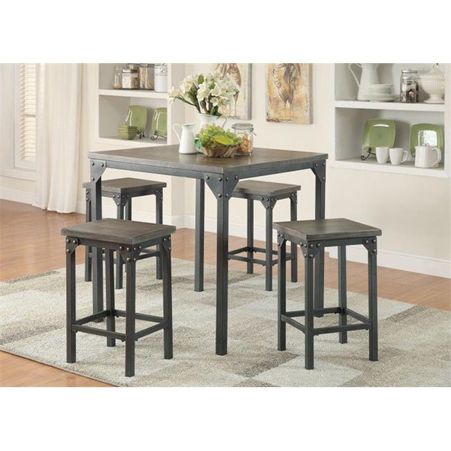 This set boasts an space saving design, square leg table and four matching saddle style stools. International concepts has been crafting fine solid wood home furnishings since 1979 and stands behind their products. Counter height dining set table and 4 chairs, durable metal construction, square shape, footrest, ideal for family gathering and evening, kitchen, oak finish + expert guide. Steve silver antonio 9 piece counter height dining set.