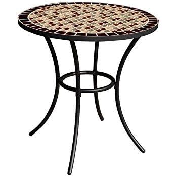 Pelham Bay Bistro Table. Diamond mosaic tiles on the tabletop and curved table legs enhance your outdoor space. 99 cosco outdoor living 88646glge paloma patio tempered glass top dining table, gray Tiles table top for year round used.